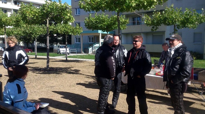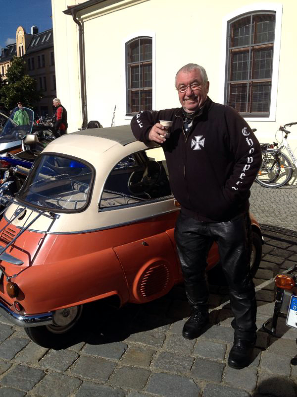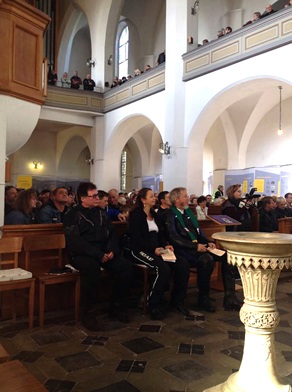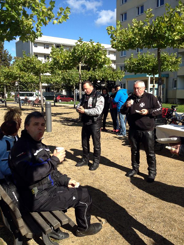 Nach dem Gottesdienst schwingt sich der Pfarrer auf sein Bike und führt den anschließenden Gedenk-Korso durch Forst an. Das ganze wird immer von Polizei und Feuerwehr abgesichert und endet an der J.-S.-Bach-Kirche in Forst, wo es dann immer etwas zu essen und zu trinken gibt.