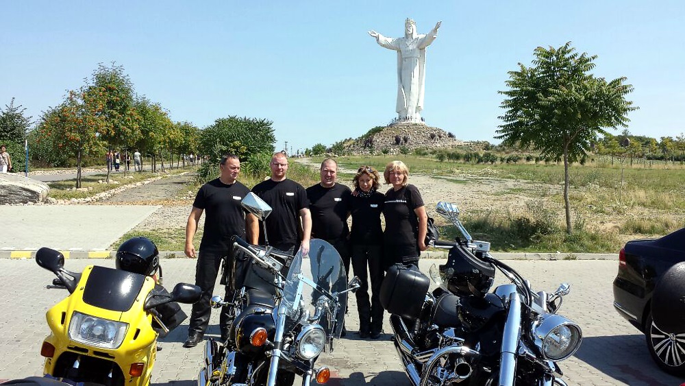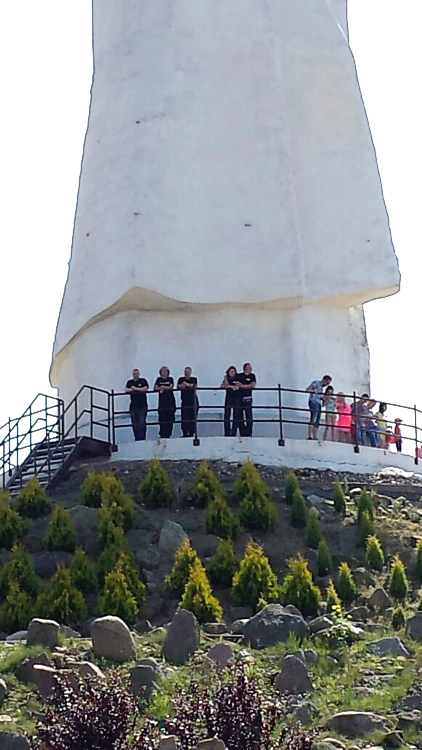 Auf halben Wege wurde erst mal ein deftiges Bikerfrühstück eingenommen und kräftig getrunken, was bei diesen Temperaturen extrem wichtig ist. Endlich angekommen, es war auch sehr kuschelig in den Lederklamotten, offenbarte sich uns eine mächtige Statue.