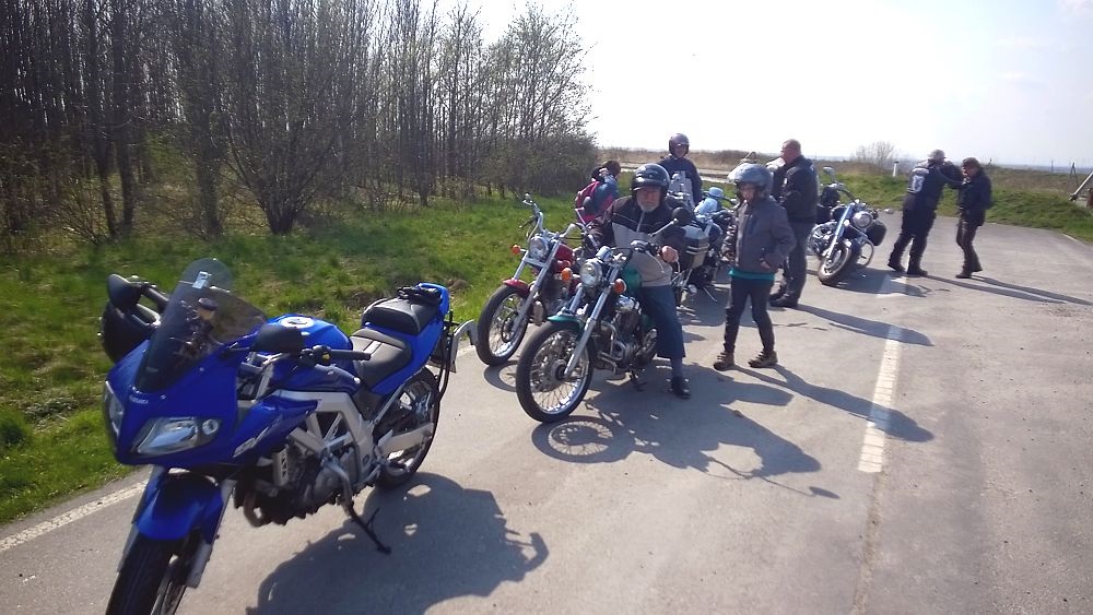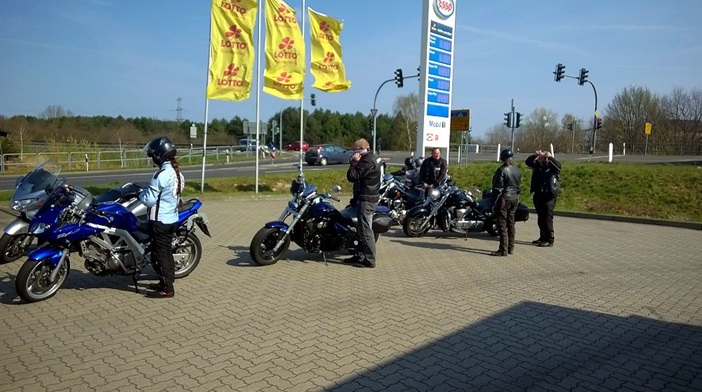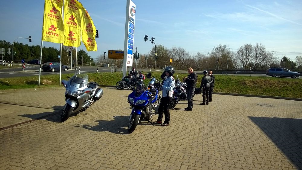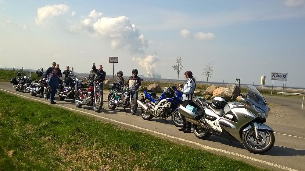 An der Esso-Tankstelle schnell noch ein Käffchen verkonsumiert, dann rauf auf die Maschinen und Richtung Forst gedüst. Auch das ist schon zur Tradition geworden - die obligatorische Pause kurz hinter Grießen. Die Straße die einst nach Horno ging, ist nun Aussichtspunkt in den Tagebau von Jänschwalde. Dann weiter nach Forst.