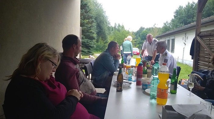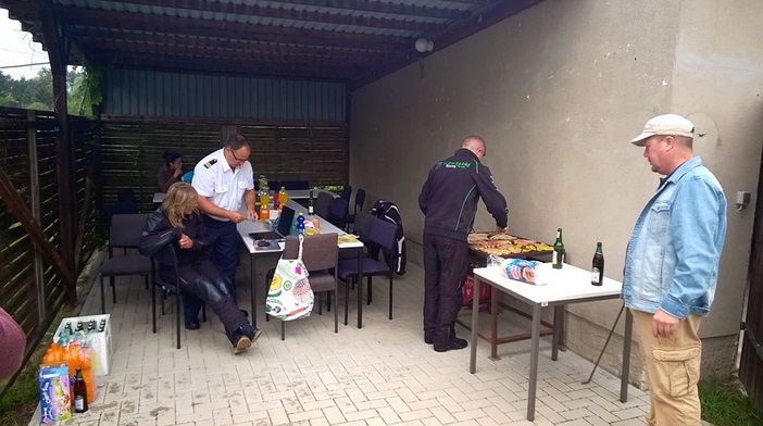 So, der Wissenshunger war gestillt, jetzt kam das leibliche Wohl an die Reihe. Grillzeug und Getränke hatte Hotte freundlicher weise schon für alle besorgt. Dann das Fleisch auf den Grill und erst mal was hinter die Krawatte geschoben.