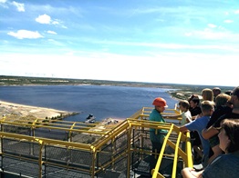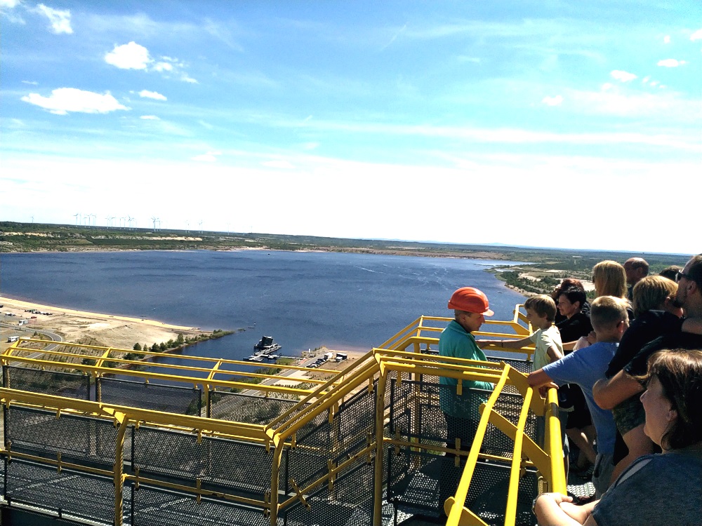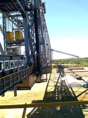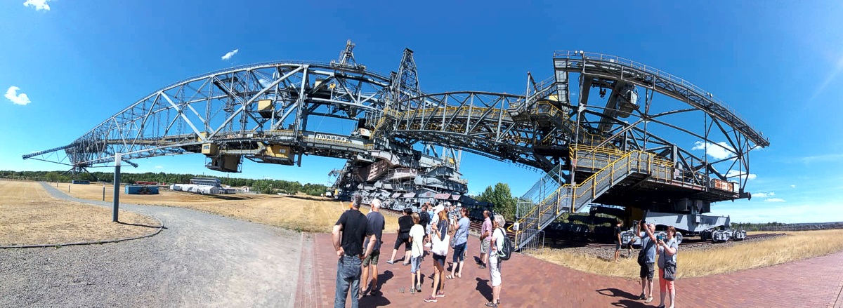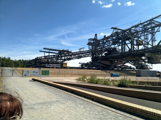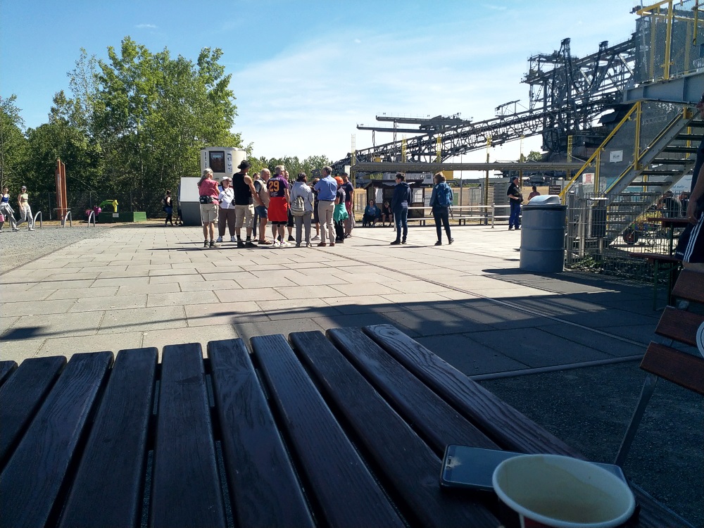 Wir mussten eine Weile warten, bis die nächste Tour startete. Aber dann ging es los. Unser Tourguide stand voll in der Materie. Sie hatte selbst viele Jahre hier, auf eine der größten beweglichen Arbeitsmaschinen der Welt, gearbeitet und wusste natürlich eine Menge interessanter Sachen.
