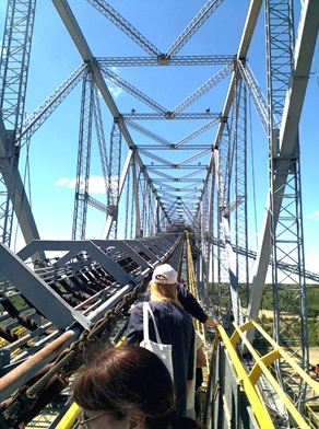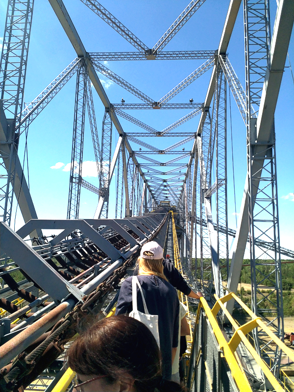 Der Weg führte dann treppauf treppab über die Förderbrücke bis zum höchsten Punkt. Sah von unten gar nicht so hoch aus. Doch es wurde immer höher und höher.