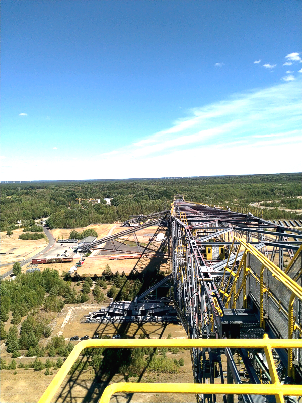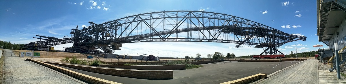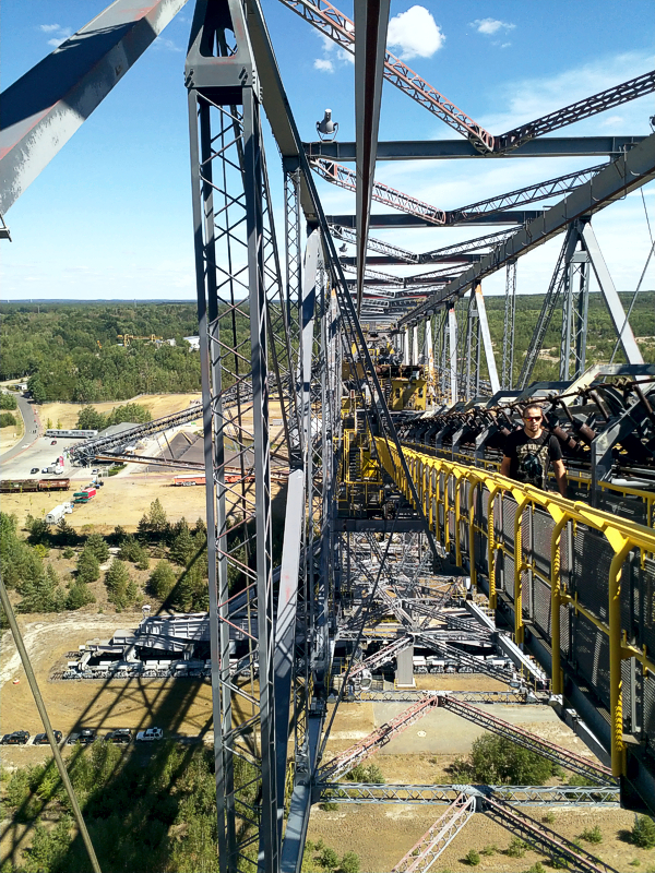 Die Strecke zur F60 ist super. Das Wetter war auch wieder königlich. Angekommen bei der F60 haben wir erst einmal Eintrittskarten gekauft und ein schönes Käffchen getrunken. Die Förderbrücke ist gigantisch, wenn man davor steht.
