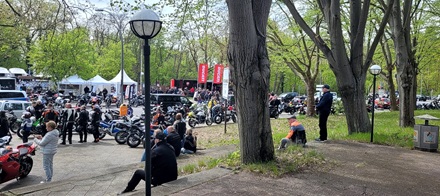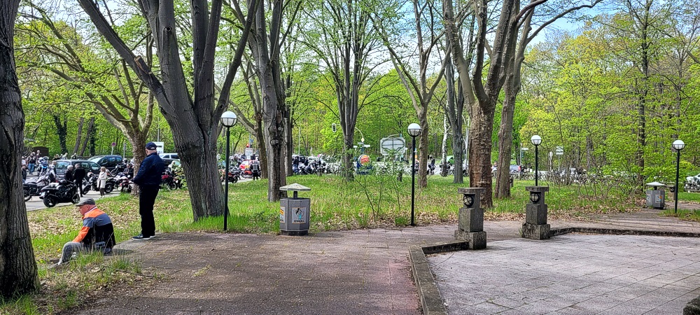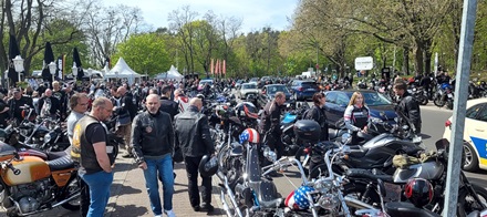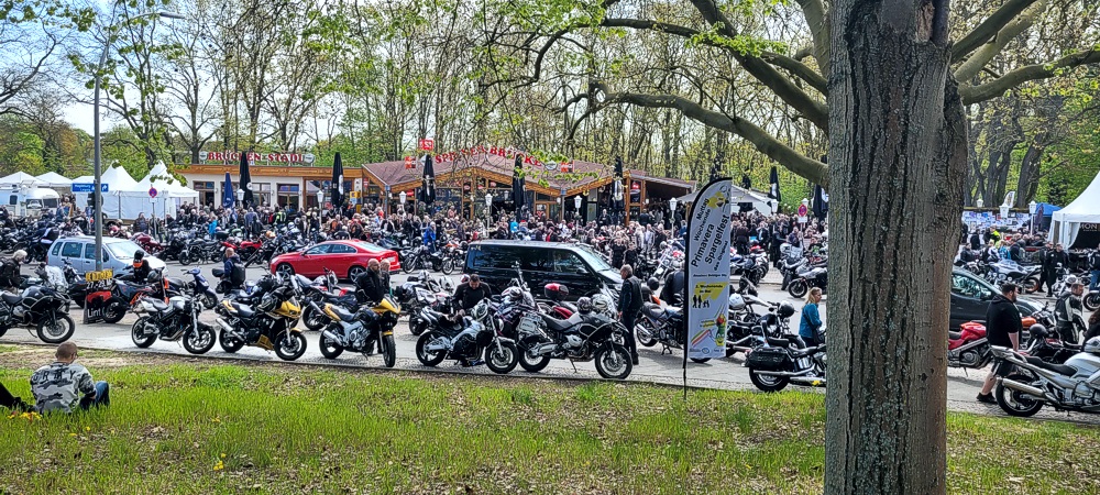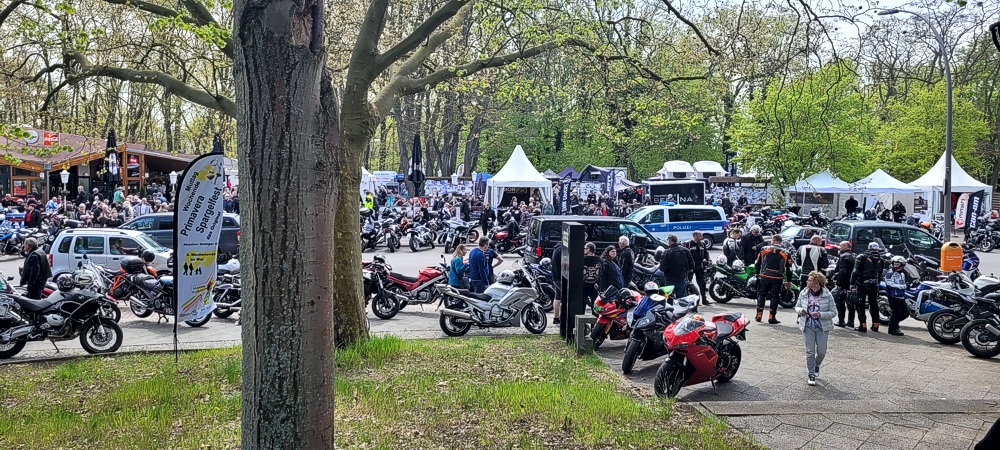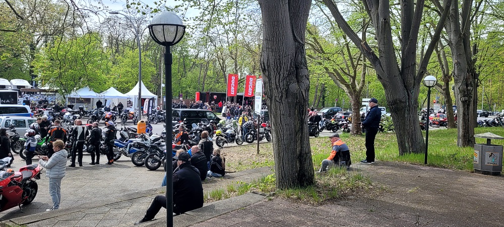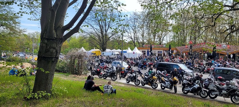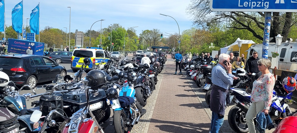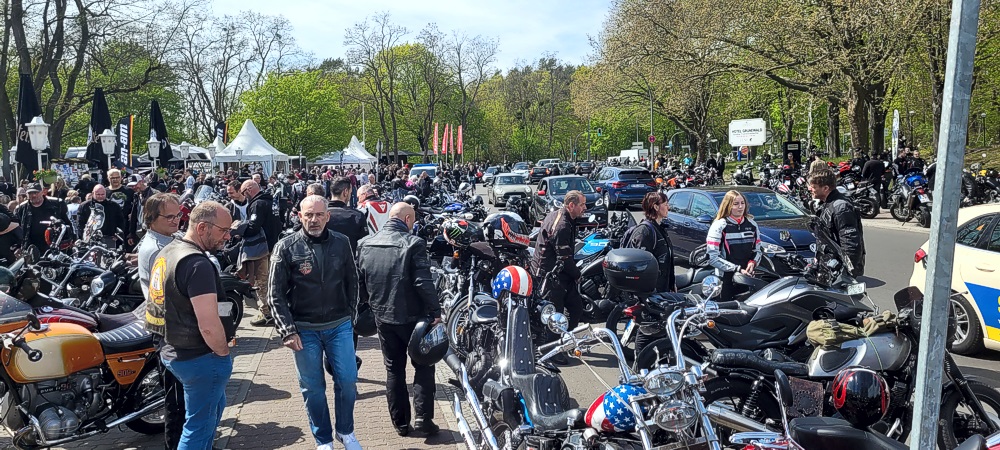 Ich habe noch nie soooo viele Biker auf einen Haufen gesehen. Die Straße war gerammelt voll (siehe Bilder). Ich habe versucht in einer Seitenstraße zu parken. Aber auch die waren schon voll. Ich habe dann irgendwo auf dem Gehweg geparkt. Es war irre. Aber so ging es auch alle anderen. Parkplatzsuche war das große Problem an diesem Tag.