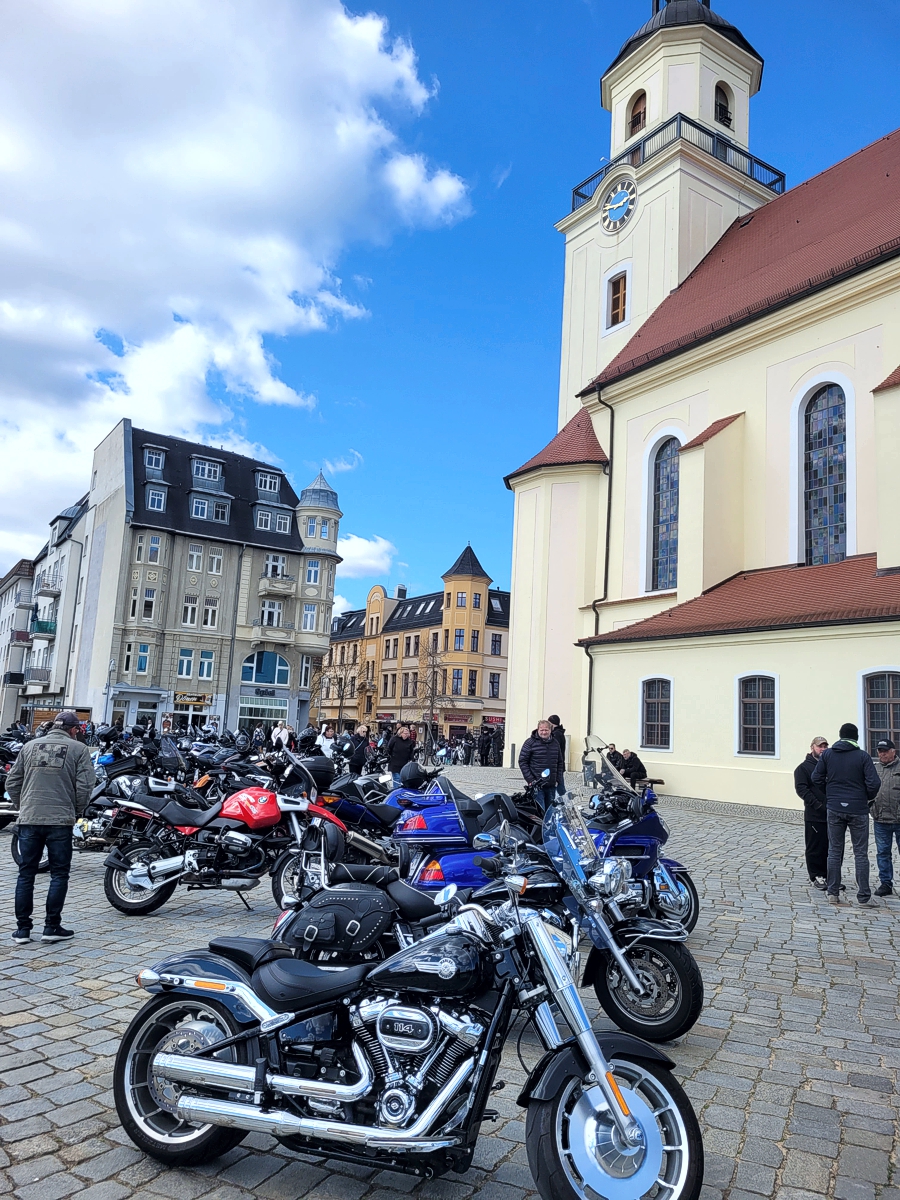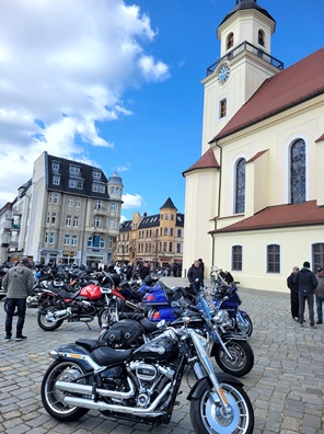 Maikühl war's. Bei 6°C ging es los und wurde auch nicht viel wärmer. Aber es war trocken und dicke Wattewolken standen am blauen Himmel. Leider war die Teilnahme nicht sehr groß. Es muss sich wohl erst rumsprechen, dass es wieder Bikergottesdienste zum Saisonstart und - ende in Forst geben wird. Am 28.09.2025 ist jedenfalls der Bikergottesdienst zum Saisonende.