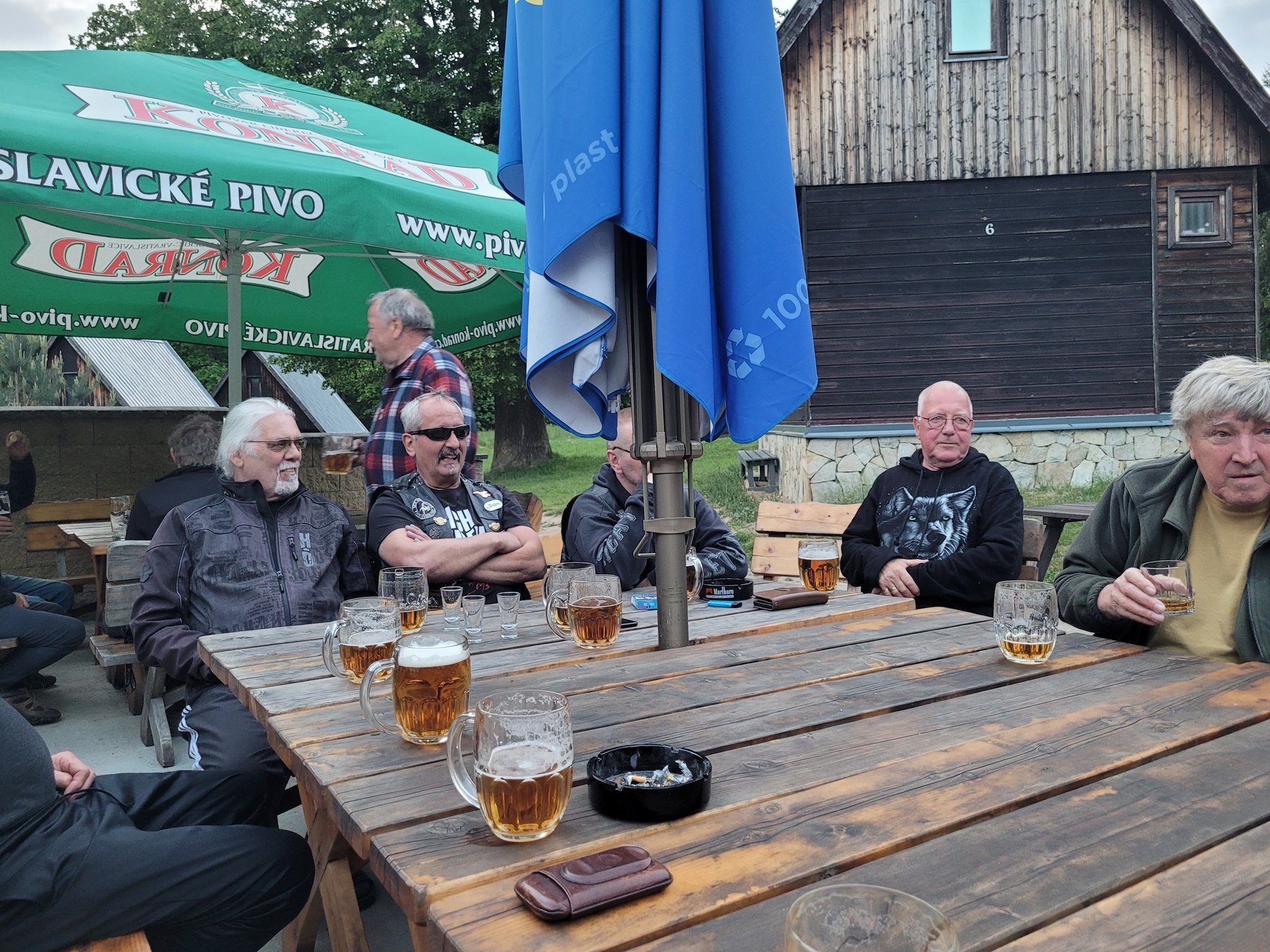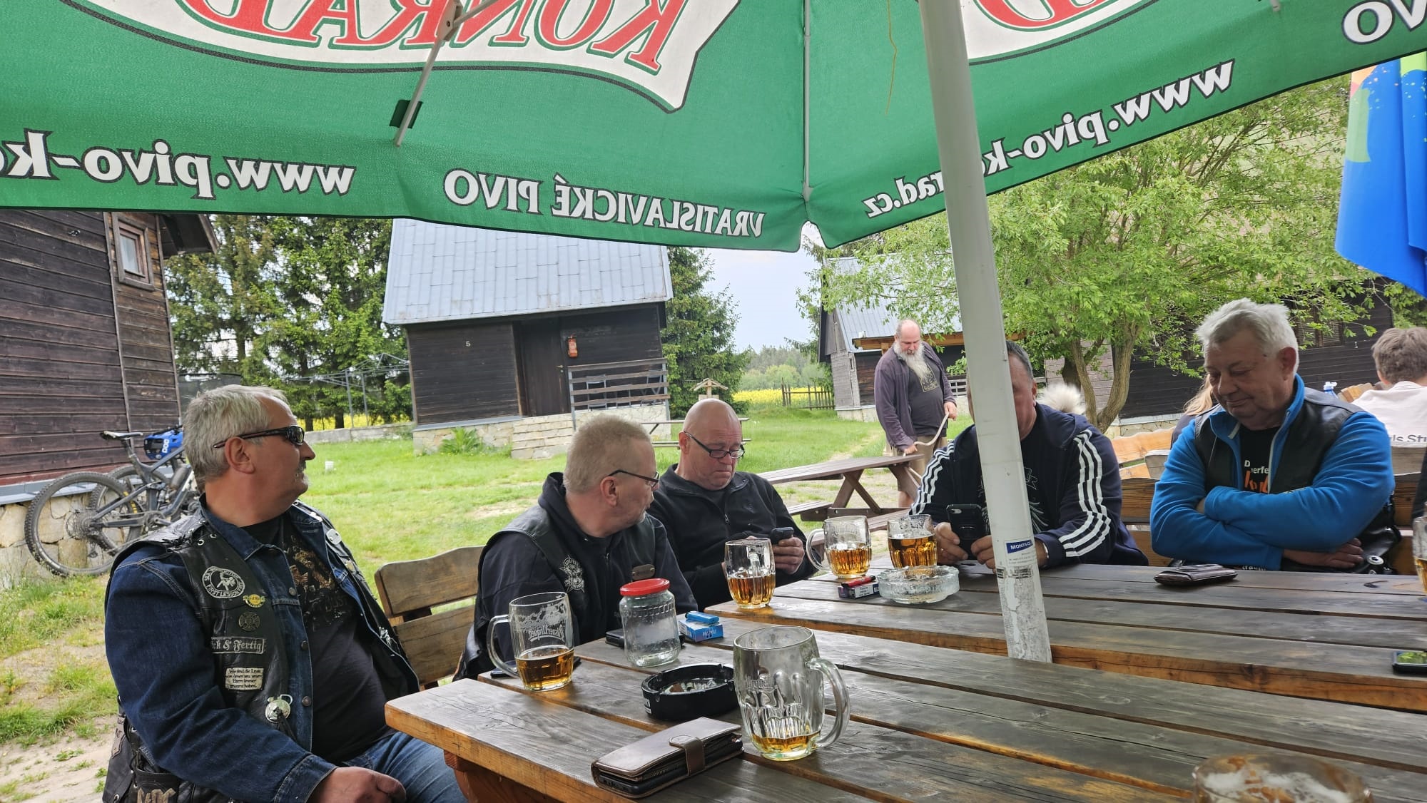 Zwischendurch haben wir noch eine kleine Kaffeepause eingelegt, dann in Döbern das Mittagessen für die Rückfahrt bestellt und in Jämlitz-Hütte Mittag gegessen. Danach, nahe Zwickau, in Polen getankt und weiter bis zur Unterkunft in Cerna Louze. Wurde auch Zeit - die alten Bikerhintern brauchen Erholung und die Leber ein Bier.