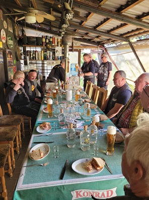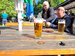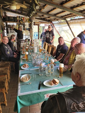 12.05. - So schnell vergeht die Zeit. Es ist Abreisetag. 4 schöne Tage sind schon wieder fast Vergangenheit. Ein Frühstück zum Abschied und dann werden die Bikes auch schon wieder startklar gemacht. Ein letztes Gruppenfoto mit unseren tschechischen Freunden und den Freunden der Motorradfreunde Maukendorf. Dann ging es wieder los in Richtung Heimat. Zwischendurch haben wir noch eine kleine Pause eingelegt. Dann ging es weiter nach Döbern, wo wir ja im Vorfeld schon unser Mittagessen bestellt hatten. War wie immer sehr lecker.